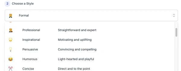 Select one of the available styles (e.g., Professional, Concise, Friendly, Humorous). The choice defines the tone and helps align the introduction with your audience.